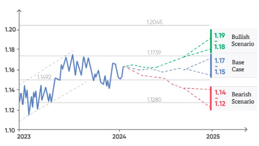 悲观的情况将导致1.12-1.14,因为欧洲央行无法像市场预期的那样进行许多次降息。