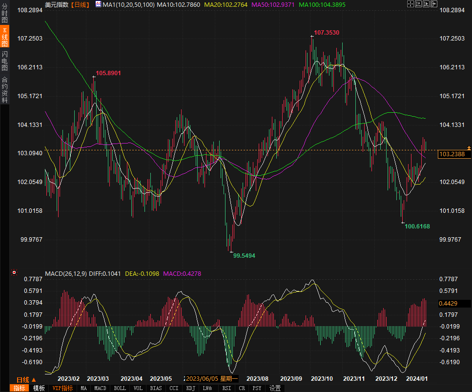 美元的复苏与美国国债收益率的强劲反弹齐头并进,所有这些都是对美联储可能最早在3月份开始下调联邦基金目标利率的押注下降的回应。经济数据公布后,美国国债收益率扩大涨幅,10年期国债收益率涨超50日均线。美国2年期国债收益率升至4.416%,为两周以来最高水平,5年期收益率为4.09%。这三者均处于12月中旬以来的最高水平。