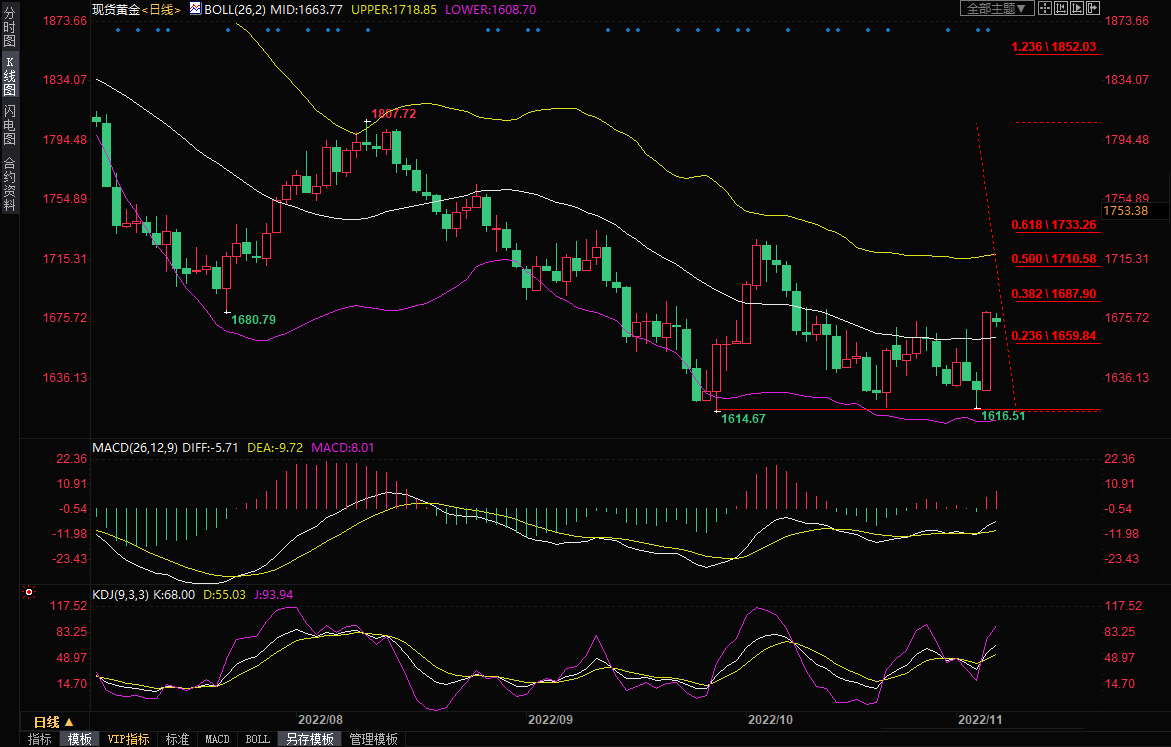 美元指数大跌,帮助金价大涨近50美元,一度创逾三周高点至1681.57美元/盎司,美联储加息75个基点的重大利空释放后,部分空头回补,也给金价提供上涨动能。