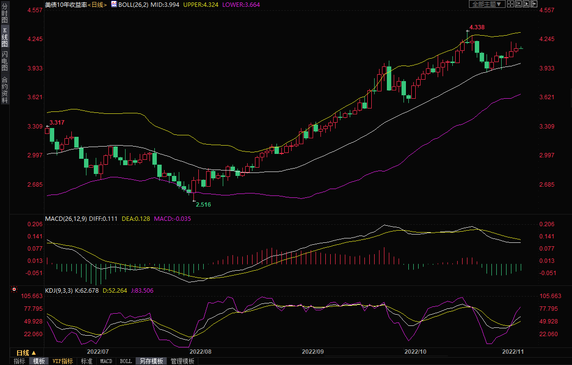 【美债收益率仍然上涨】上周五,美国十年期国债收益率依然上涨,收盘报4.158%,涨幅约0.82%。