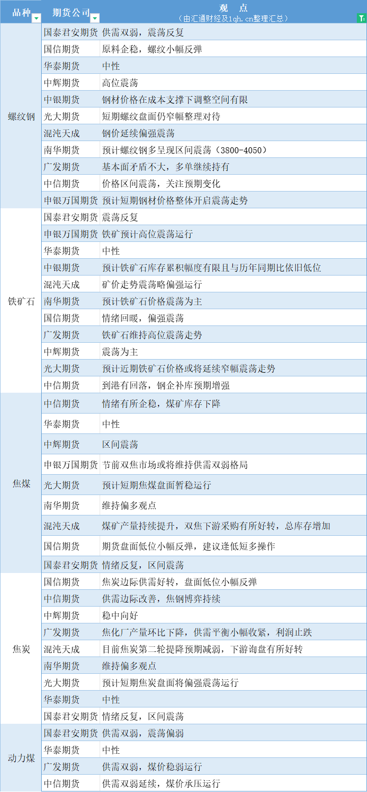 标题:期货公司观点汇总一张图:1月24日黑色系(螺纹钢、焦煤、焦炭、铁矿石、动力煤等)