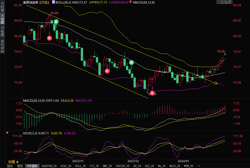 Miller Tabak首席市场策略师Matt Maley表示,美国原油突破76美元/桶,应该会证实油价的近期趋势已经转向上行。
