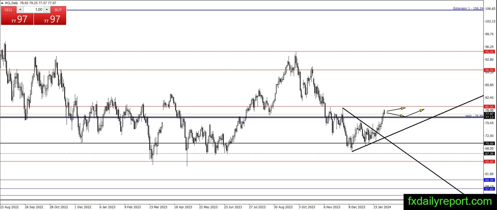 阻力位:77.13美元、80.00美元、85.00美元、90.00美元