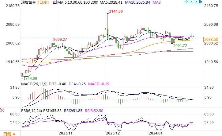 Evangelista在周一的一份报告中表示:“尽管中东紧张局势不断升级,上周末在与伊朗有关联的民兵袭击美国驻约旦基地后,中东紧张局势达到新高,但避险黄金仅录得小幅上涨。这种情况表明,即使在地缘政治动荡的背景下,金价通常会上涨,市场几乎没有变化,而是关注即将到来的美联储会议和利率决议以及1月份的非农就业数据,这些都将于本周晚些时候公布。”