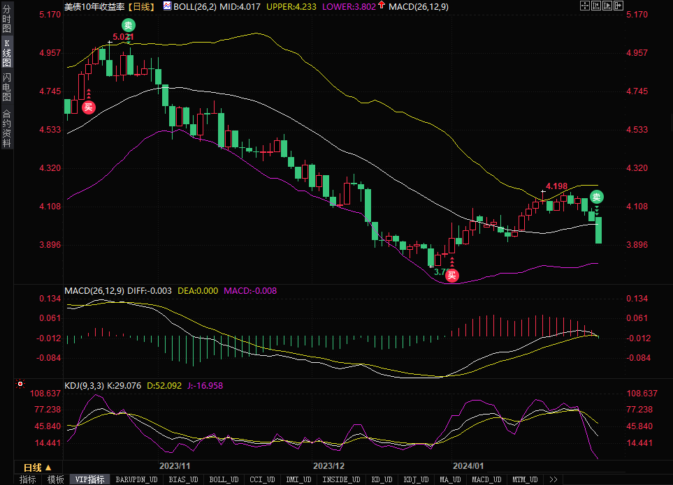 国债收益率周三跌至三周低点附近,10年期公债收益率创下12月以来最大单日跌幅。