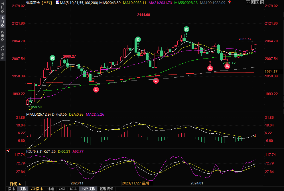 现货黄金收涨0.77%,收报2054.88美元/盎司。此前在交易日早些时候触及2065.32美元/盎司,为自1月3日以来的最高水平。