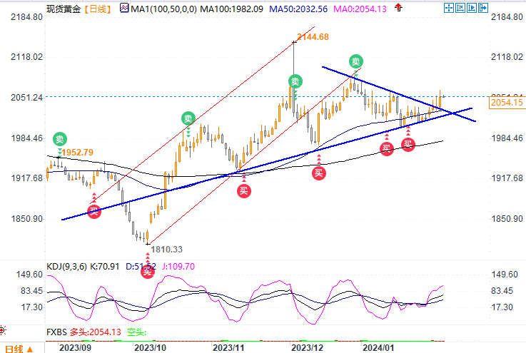 现货黄金报2054.07美元/盎司。