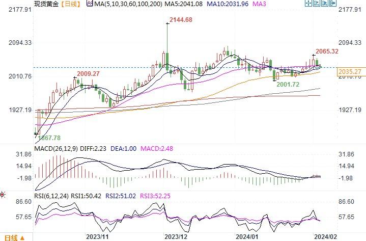 汇通财经APP讯——金价在周一(2月5日)亚洲盘中延续弱势震荡,下探至2032下方附近,正逼近市场所认为的重要支撑区域2030-2028,需关注该支撑测试情况。乐观的美国非农就业报告抑制了3月份降息的希望,这令黄金承压。然而,在中东地缘政治局势持续紧张的情况下,金价的下行空间可能有限。