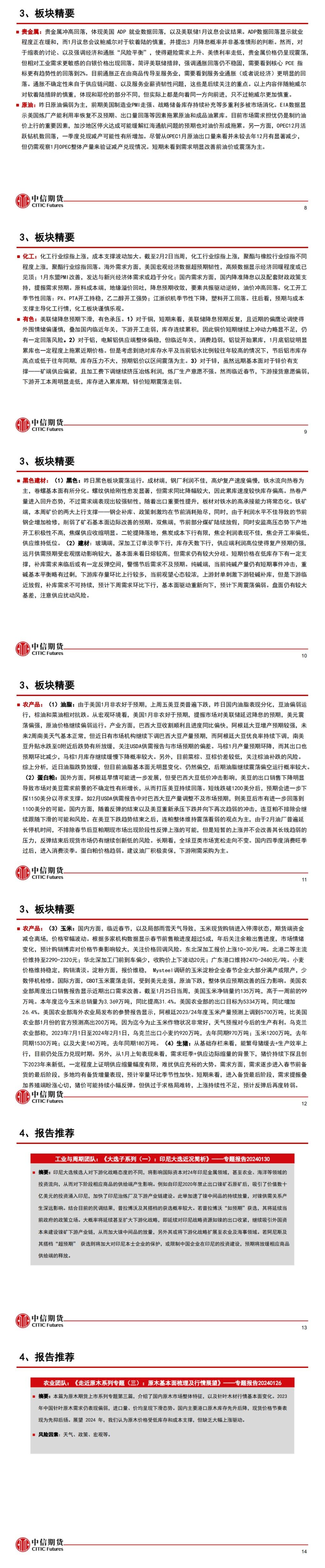 以下为中信期货今日晨报对股指、国债、贵金属、原油能源化工、有色金属、螺纹钢材焦炭黑色系玻璃纯碱等建材、玉米生猪油脂蛋白粕等农产品等期货的操作建议和提醒。