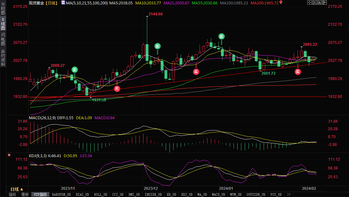 现货黄金窄幅震荡目前交投于2035美元/盎司附近。金价周二上涨0.5%,收报2035.78美元/盎司,收复了周一的部分跌幅,因此前美元和美债收益率回落,给金价提供反弹机会,交易商等待本周几位美联储官员的讲话,以判断今年可能的降息步伐。