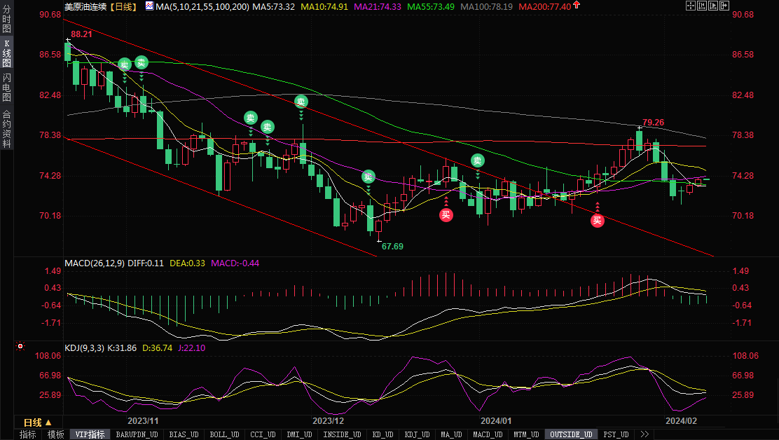 美原油窄幅震荡,目前交投于73.97美元/桶附近。油价周三连续第三日上涨,受助于美国汽油库存降幅大于预期以及中东紧张局势加剧。