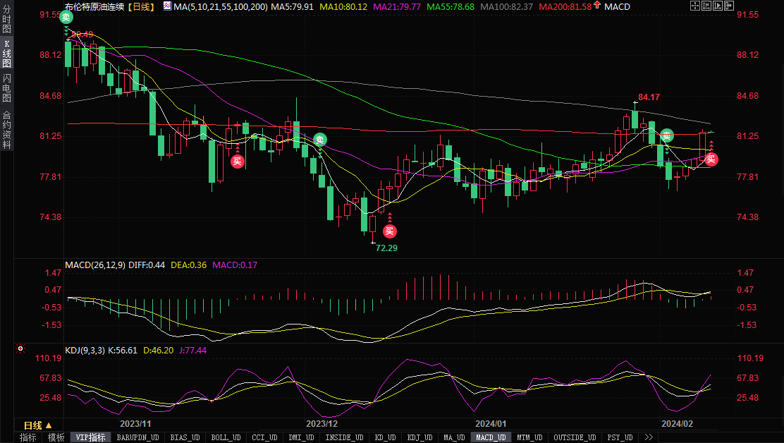 标题:中东局势动荡推动油价上涨,布伦特原油飙升至80美元以上,初步攻占200日均线