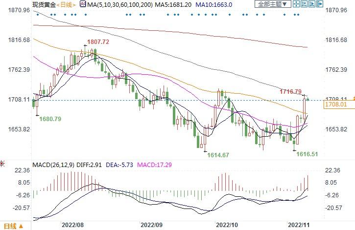 现货黄金报1708.01美元/盎司