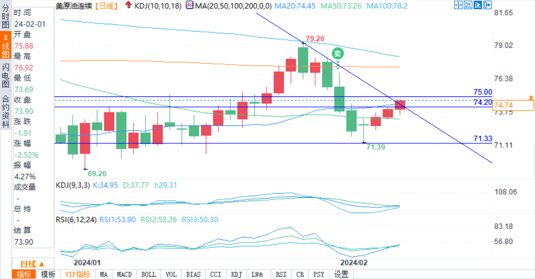 标题:WTI原油进入关键水平,上破75美元表明下滑趋势逆转