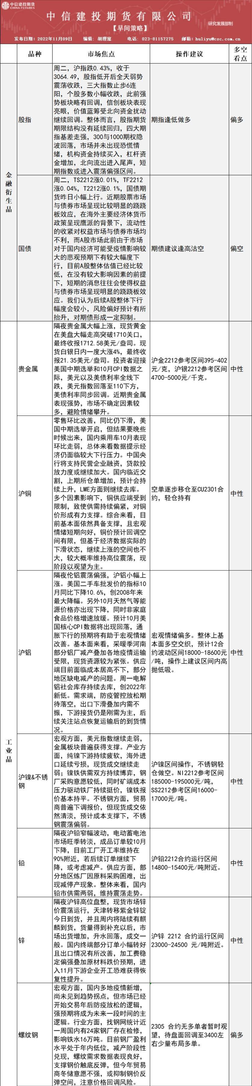 标题:中信建投期货11月9日早间交易策略