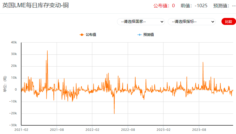 LME铜每日库存变动为0,昨日库存减少1025吨。