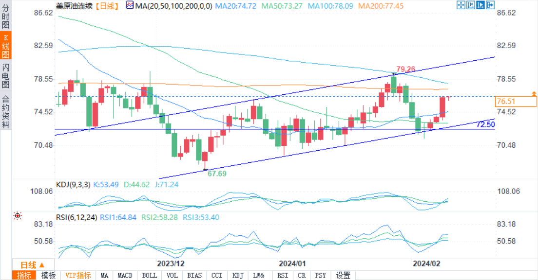 标题:WTI原油继续上涨,75.36%交易者净做多,试图重回77.40