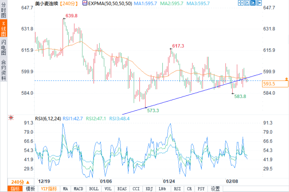CBOT小麦价格下跌0.59%,至594美元,但仍高于去年9月540美元的三年低点。