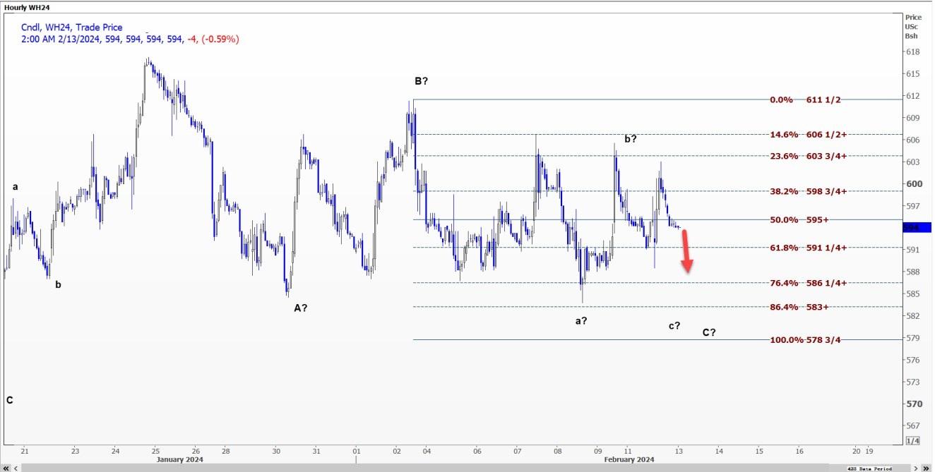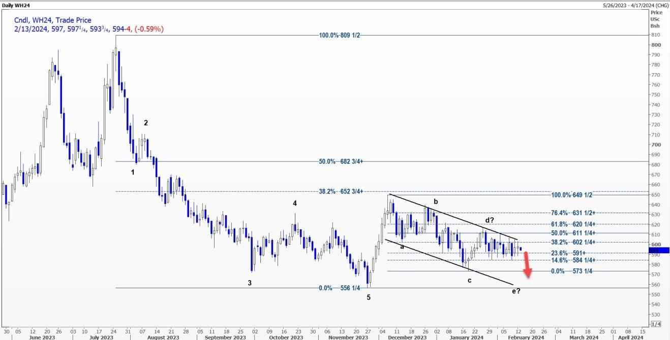 CBOT小麦可能测试支撑位5.9125美元CBOT 3月小麦WH24可能测试每蒲式耳5.9125美元的支撑位,跌破可能打开通往5.8625美元的道路。