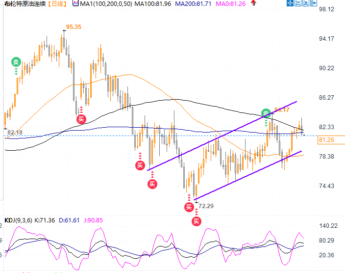 布伦特原油主力报 81.23 美元/桶,跌0.45%。