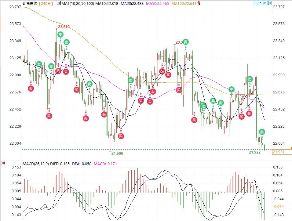 现货白银收盘大跌2.52%,报22.11美元/盎司。跌破22.25美元/盎司并收于该位下方,使银价转为看跌。银价有望测试首个看空目标,即21.35美元/盎司区域。