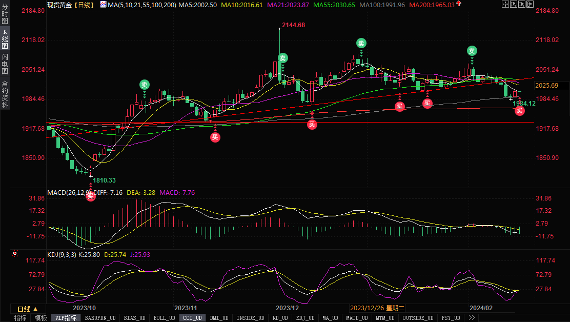 现货黄金窄幅震荡,目前交投于2003.87美元/盎司附近。金价周四上涨0.6%,收报2004.18美元/盎司,此前疲软的美国1月零售销售创10个月来最大降幅,推动美元和公债收益率走低,给金价提供反弹机会,另外,金价周三100日均线失而复得后,吸引逢低买盘入场。