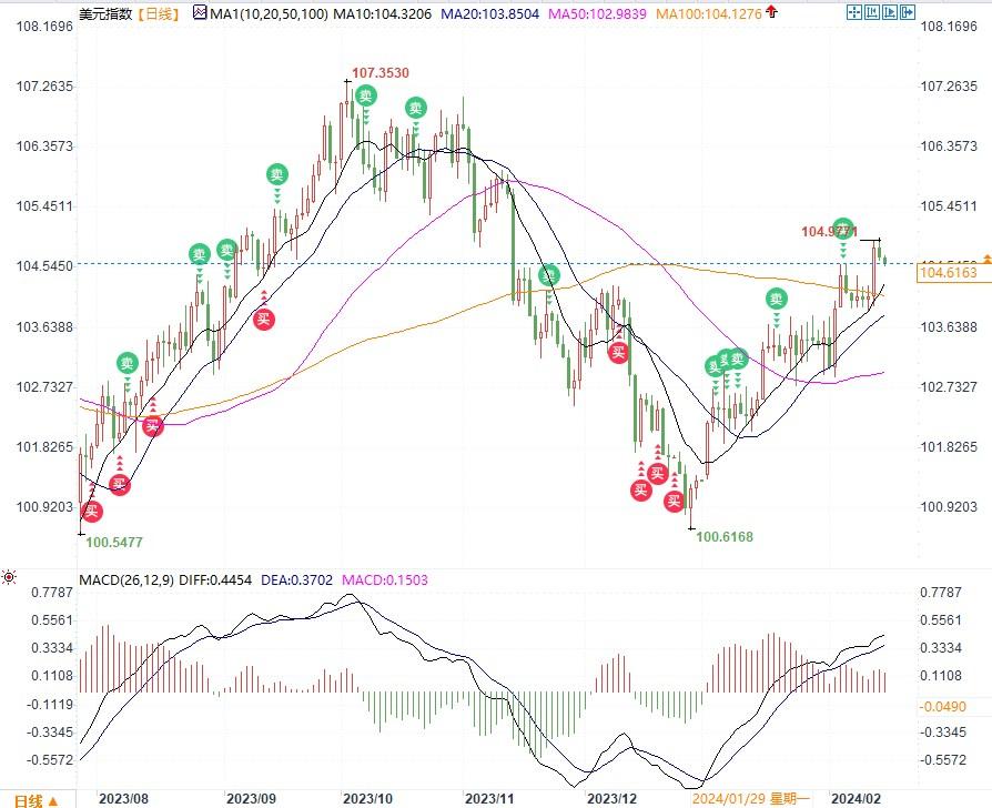 技术格局方面,50日均线位于104.283,200日均线位于103.610,这进一步定义了