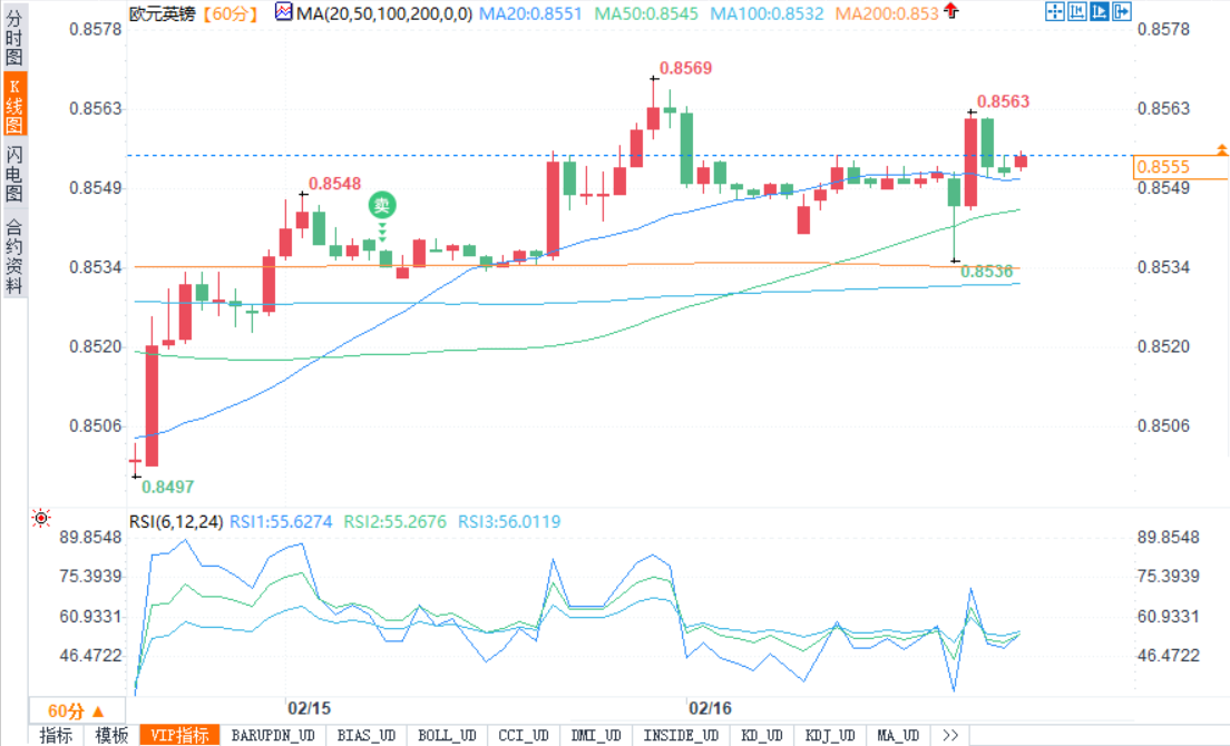 即时阻力位在0.8555附近。多头的下一个主要阻力位在0.8570附近。收盘价高于0.8570可能会加速上涨。