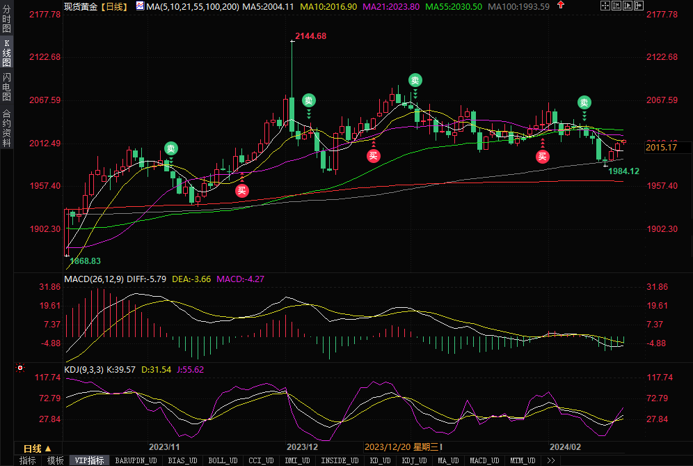 现货黄金震荡为主,目前交投于2018.32美元/盎司附近,涨幅约0.25%。上周五金价收涨0.46%,收报2013.46美元/盎司,黄金周五略有上涨,但由于通胀数据火热,美联储提前降息的前景降温,黄金连续第二周周线下跌;当然,由于地缘局势仍然紧张,市场对美联储已经结束加息周期达成普遍共识,仍有逢低买盘支撑金价。