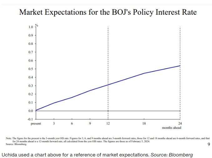 内田在演讲的参考部分引起了日本央行观察人士的注意,他在演讲中谈到了市场对加息后利率路径的预期。
