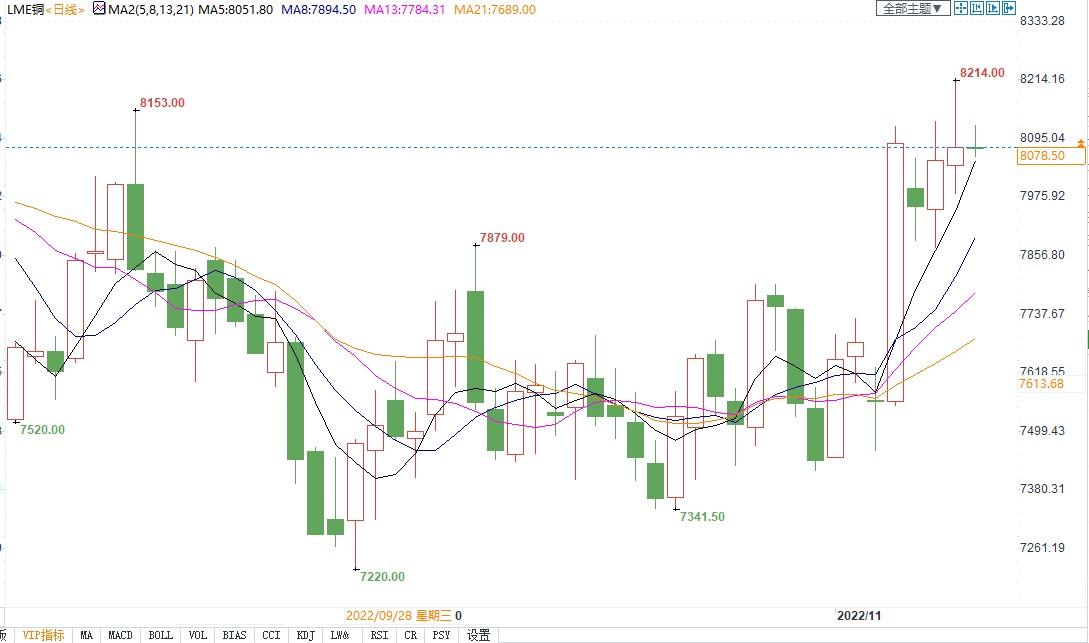 对既有疫情政策可能很快消失的猜测引发了多个市场的反弹。铜价近几个月来一直受到支撑,部分原因是亚洲国家需求强劲,经济重启的前景帮助铜价反弹至10月份窄幅交易区间的上方。