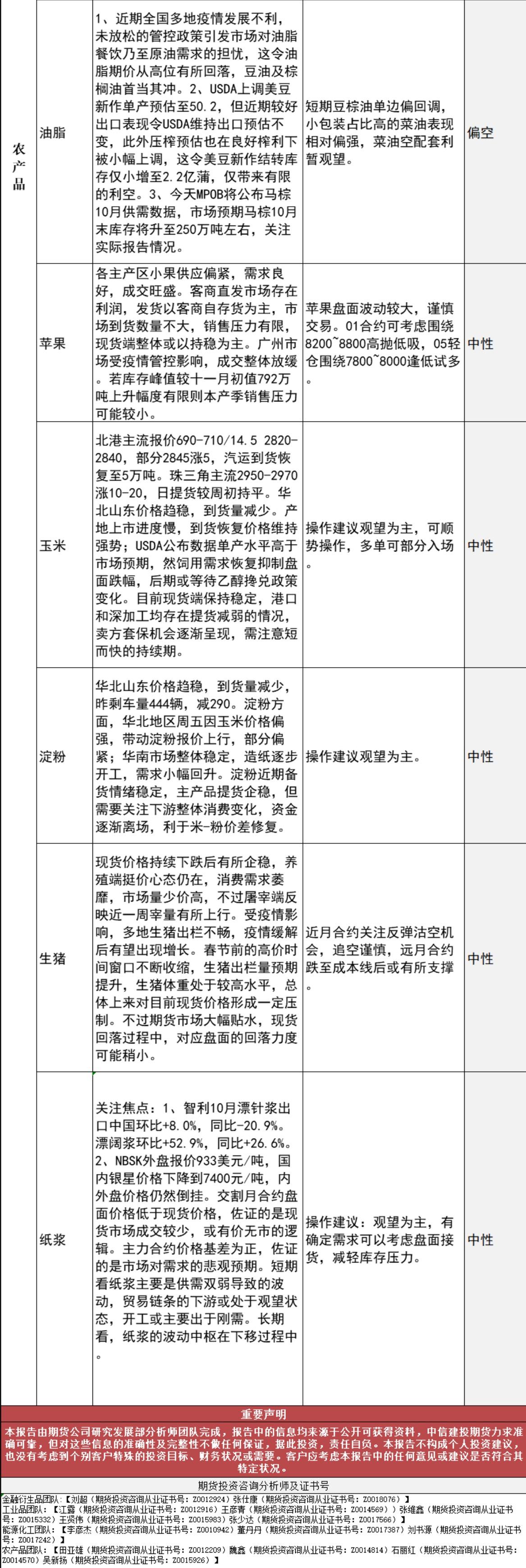 标题:中信建投期货11月10日早间交易策略
