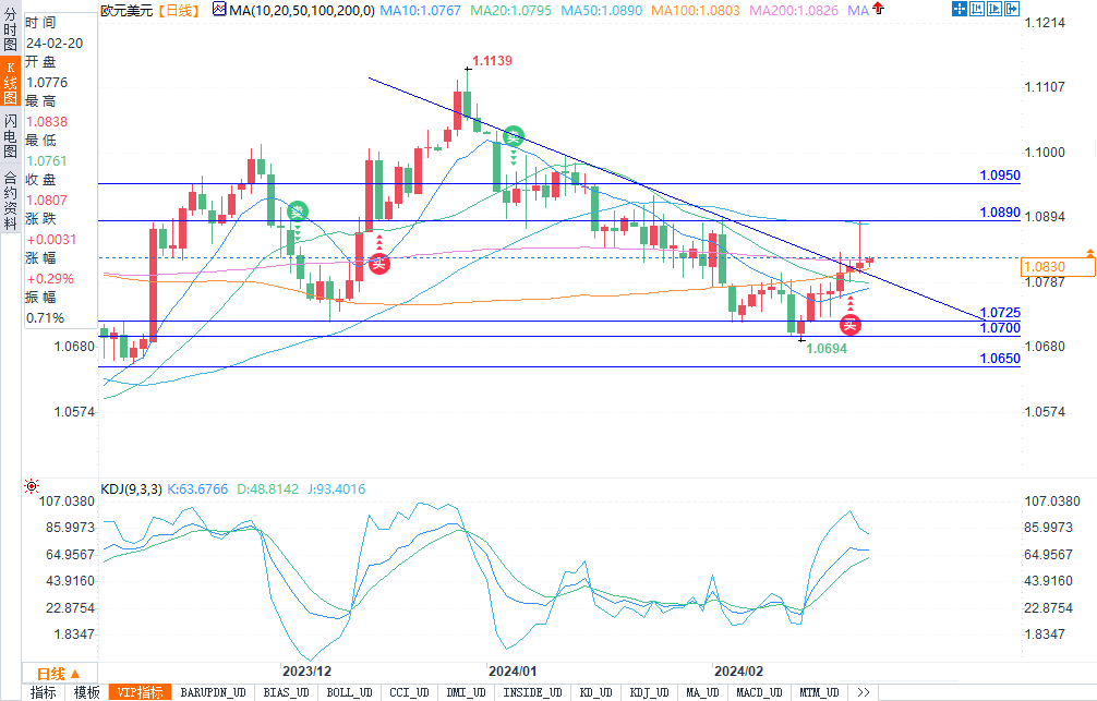 北京时间16:08,欧元/美元报1.0830,涨幅0.07%,英镑/美元报1.2671,涨幅0.09%。
