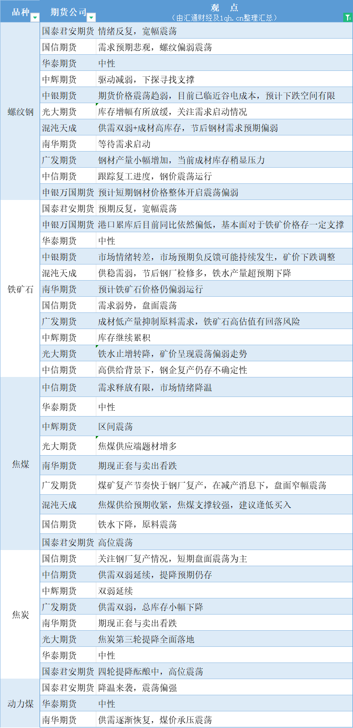 标题:期货公司观点汇总一张图:2月26日黑色系(螺纹钢、焦煤、焦炭、铁矿石、动力煤等)