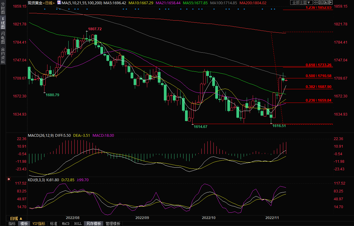 现货黄金现报1706.60美元/盎司。