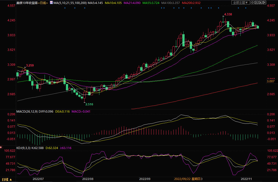 周三10年期美债收益率探底回升,但周四亚洲时段,美债收益率延续跌势,目前下跌1.11%至4.096附近,略微利空金价。