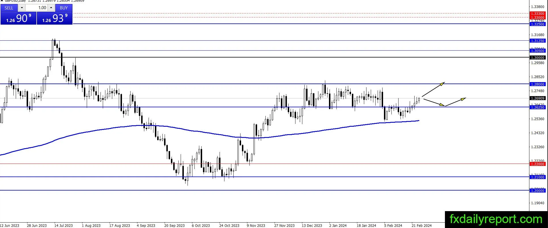 欧元/美元 正试图再次上涨至200日移动平均线上方,朝着1.0900方向发展。当该货币对收盘超过200日移动平均线时,将回归其牛市趋势。然而,如果收盘低于200日移动平均线或1.0800,则可能出现向1.0650下跌的可能性,然后再继续牛市趋势。