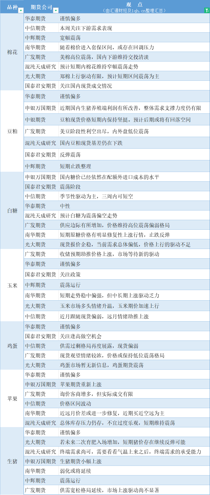 期货公司观点汇总一张图:2月28日农产品(棉花、豆粕、白糖、玉米、鸡蛋、生猪等)