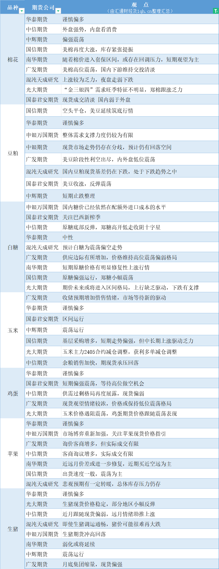 标题:期货公司观点汇总一张图:2月29日农产品(棉花、豆粕、白糖、玉米、鸡蛋、生猪等)
