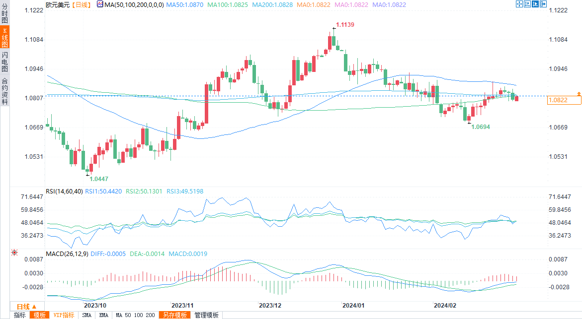 欧元兑美元报1.0823/24,涨0.18%,