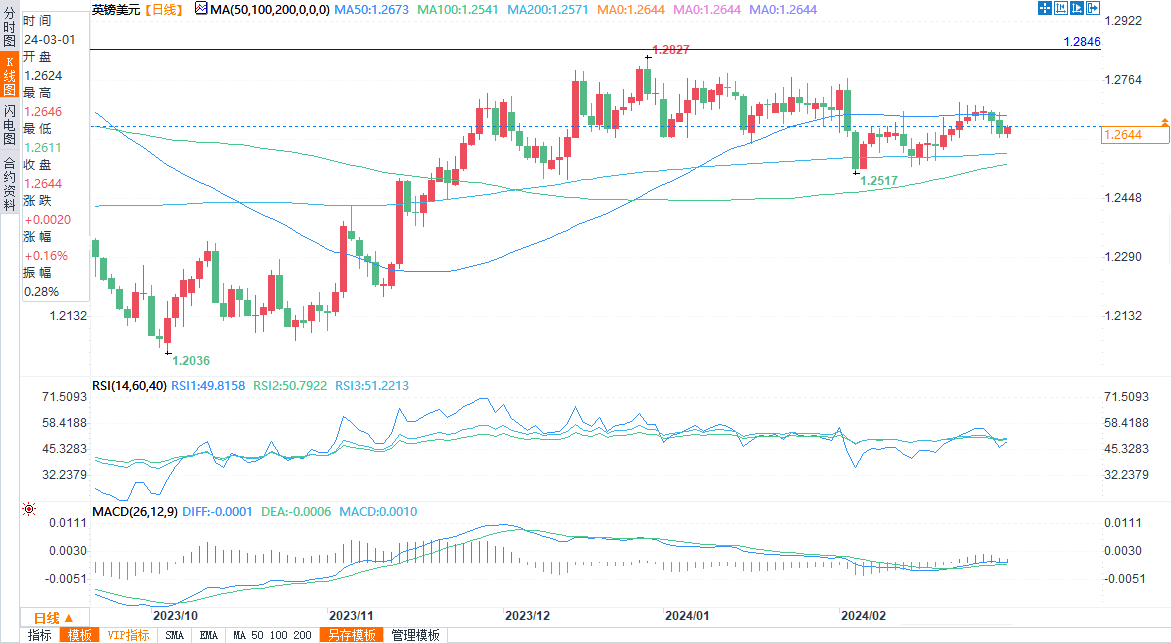 英镑兑美元报1.2644/45,涨0.16%。