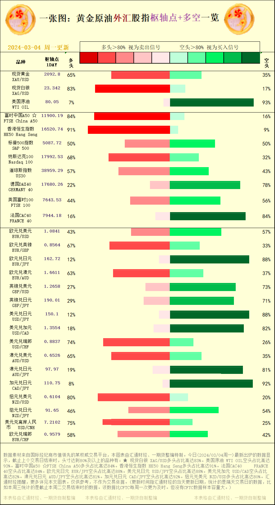 标题:一张图:2024/03/04黄金原油外汇股指"枢纽点+多空占比"一览