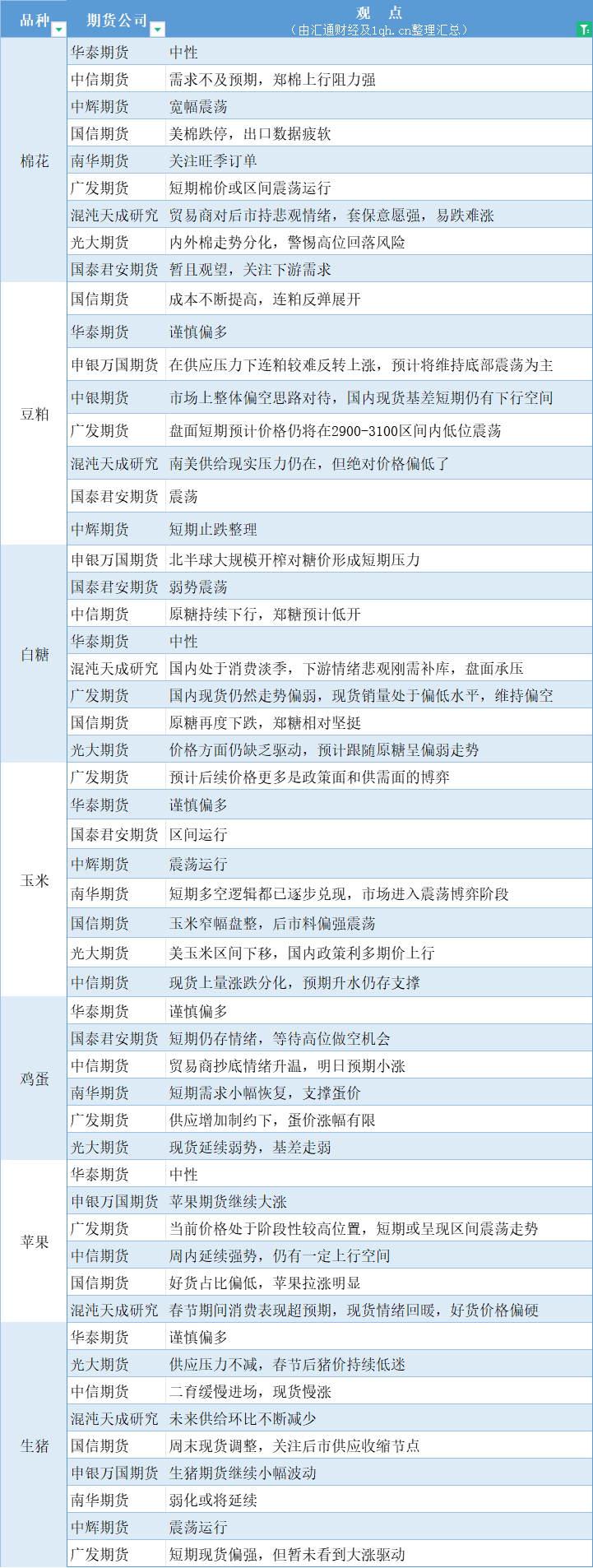 期货公司观点汇总一张图:3月4日农产品(棉花、豆粕、白糖、玉米、鸡蛋、生猪等)