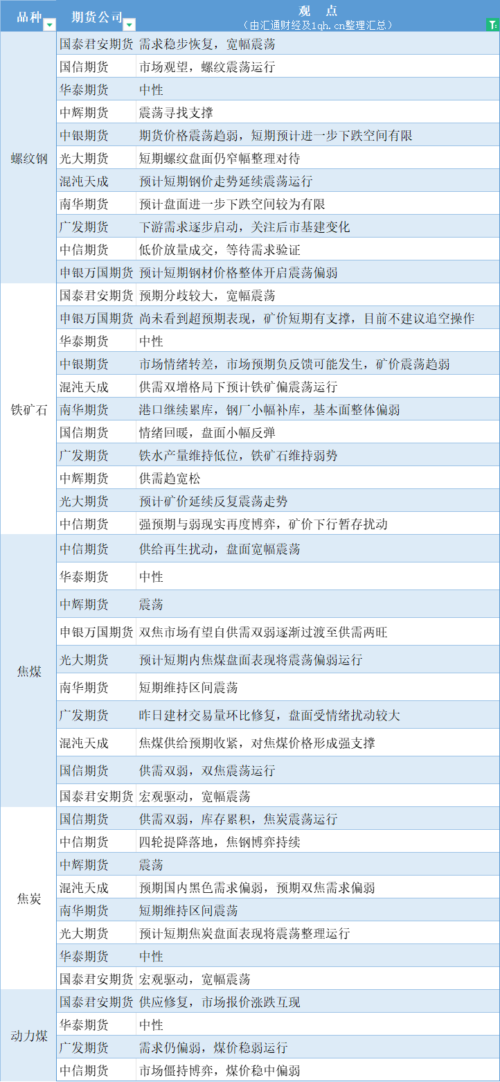 标题:期货公司观点汇总一张图:3月5日黑色系(螺纹钢、焦煤、焦炭、铁矿石、动力煤等)