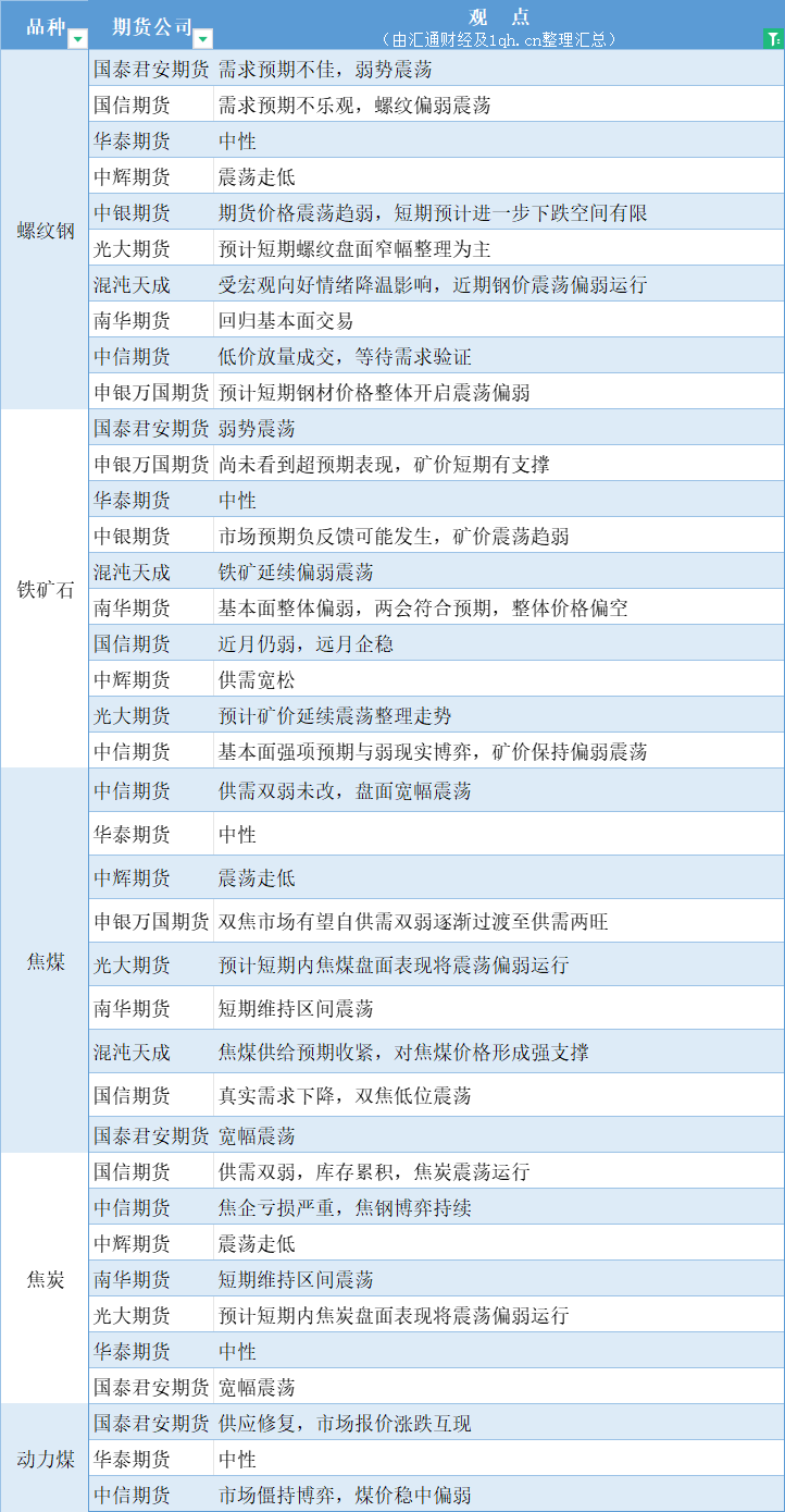 期货公司观点汇总一张图:3月6日黑色系(螺纹钢、焦煤、焦炭、铁矿石、动力煤等)