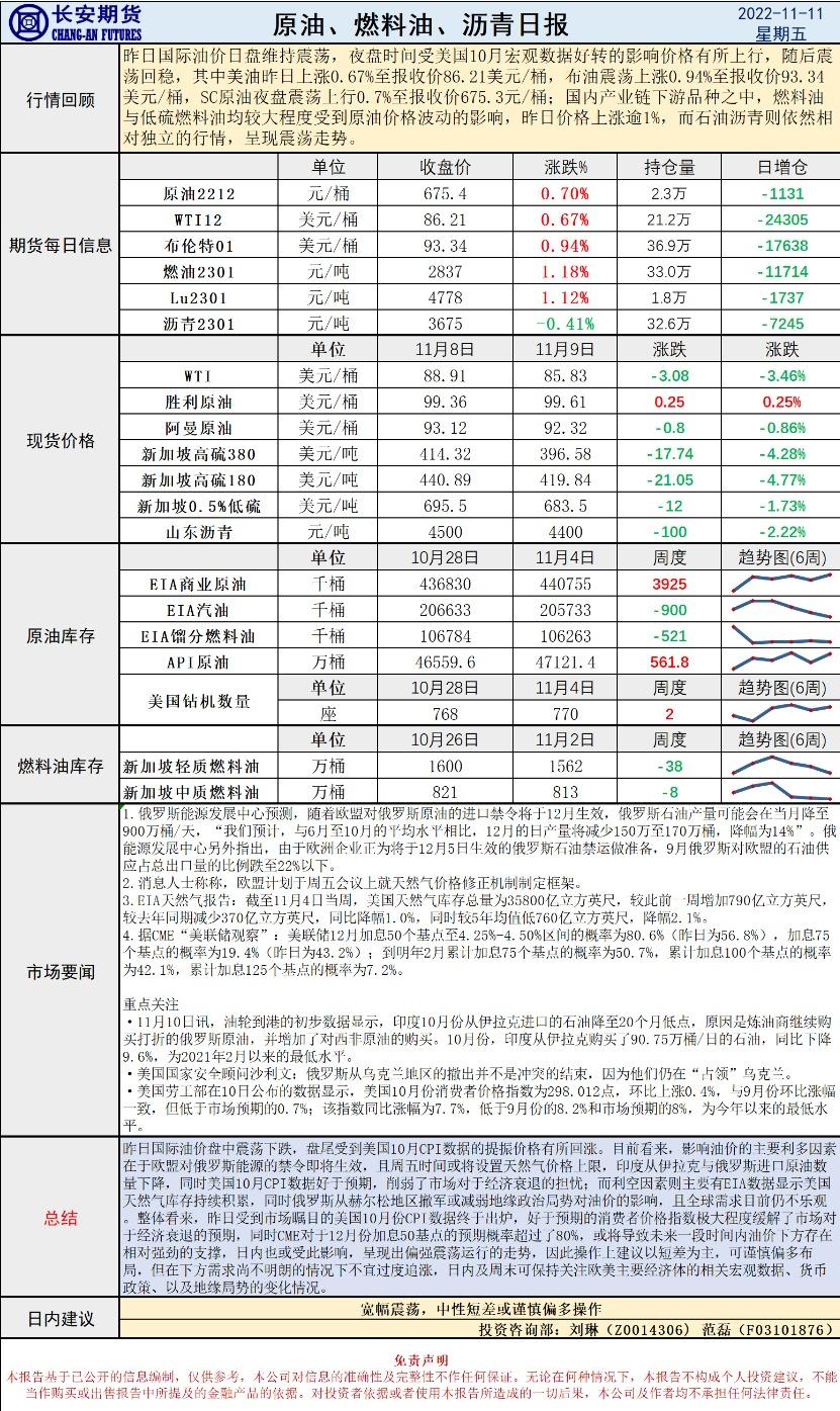 11月11日,长安期货发布原油早评,认为原油将宽幅震荡,建议中性短差或谨慎偏多操作。