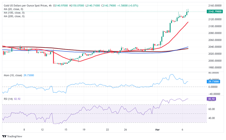 汇通财经APP讯——周四(3月7日)亚市早盘中,现货黄金在昨日大涨之后保持坚挺走势,金价目前位于2150美元/盎司附近。FXStreet首席分析师Valeria Bednarik撰文,对黄金技术前景进行分析。