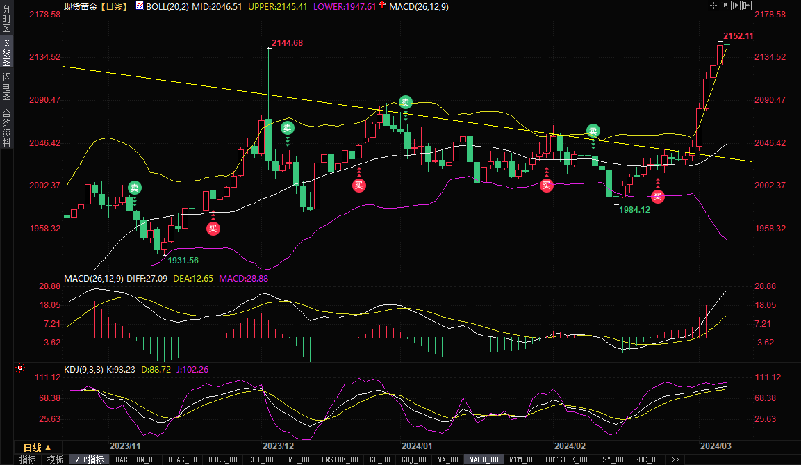 美元指数跌创逾一个月新低,金价周三延续涨势,并一度刷新历史高点至2152.11美元/盎司,收报2147.88美元/盎司,涨幅约0.95%,为连续六个交易日上涨。