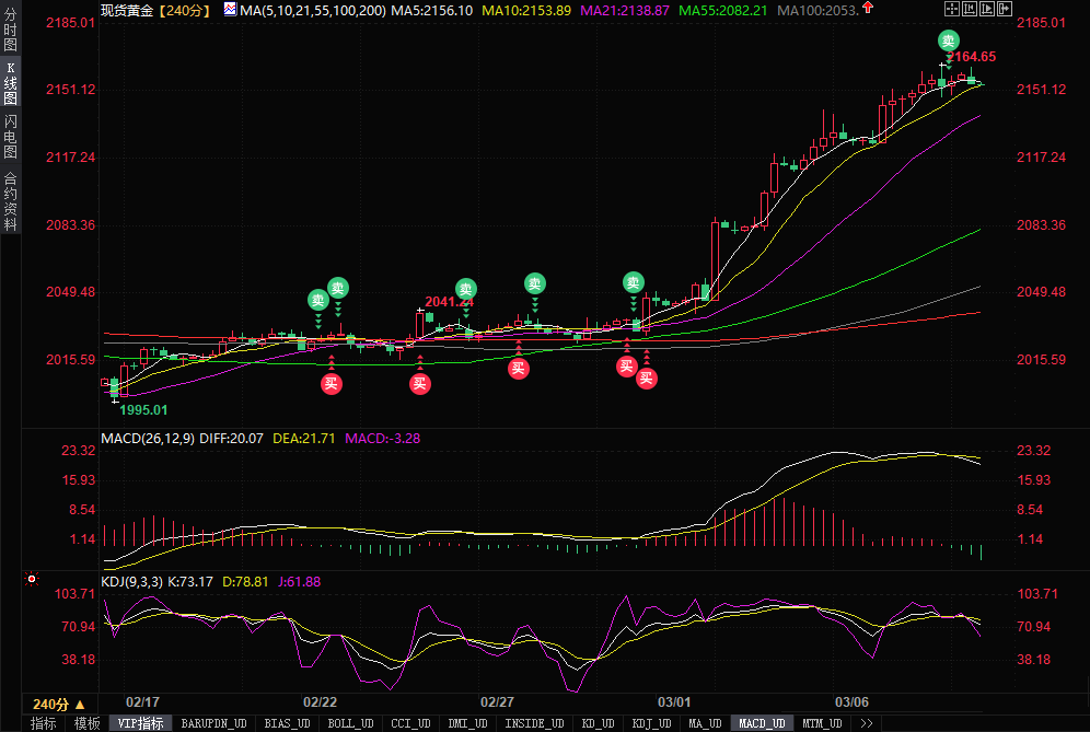 汇通财经APP讯——金价周五(3月8日)自历史高点小幅回落,目前交投于2155.33美元/盎司附近,但仍有望创下五个月来单周最大涨幅,因美联储主席鲍威尔的讲话增强了投资者对美国6月首次降息的预期,金价曾周四刷新历史高点至2164.65美元/盎司。