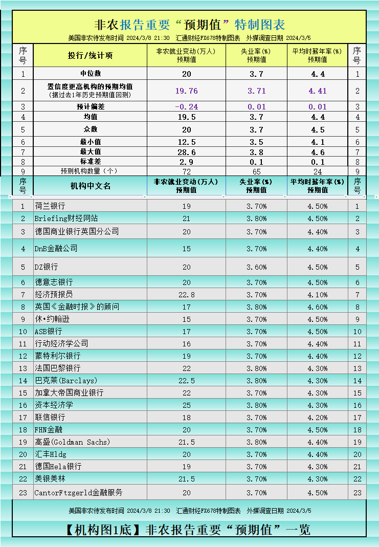 (上图1:投行/金融大咖预测非农报告、非农+失业率+薪资年率,三个都预测)